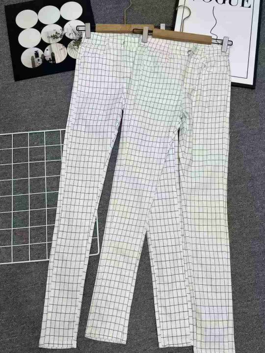 松紧腰黑白格子印花大码2025秋装新款弹力翠花显瘦百搭直筒女长裤,独立包装,高弹力长裤,码数S-XL,数量80左右,全清5.8元