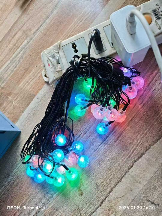 2100条8m长32灯彩灯串到货2100条,8米长,三色变光,二插圆插,膜袋包装,每箱300条。几毛钱的事