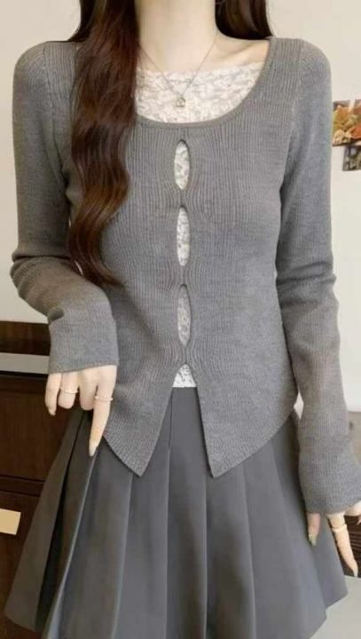 春秋新款纯欲风性感镂空弹力修身显瘦开叉针织套头毛衣,独立包装,均码面料...