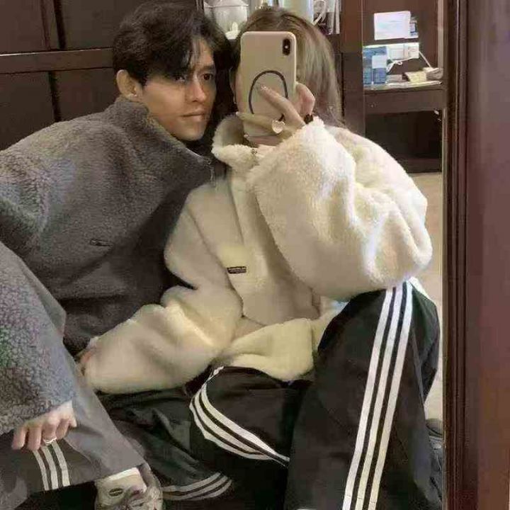 [啤酒]天猫在售两面穿棉服男女秋冬季ins加绒羊羔毛外...