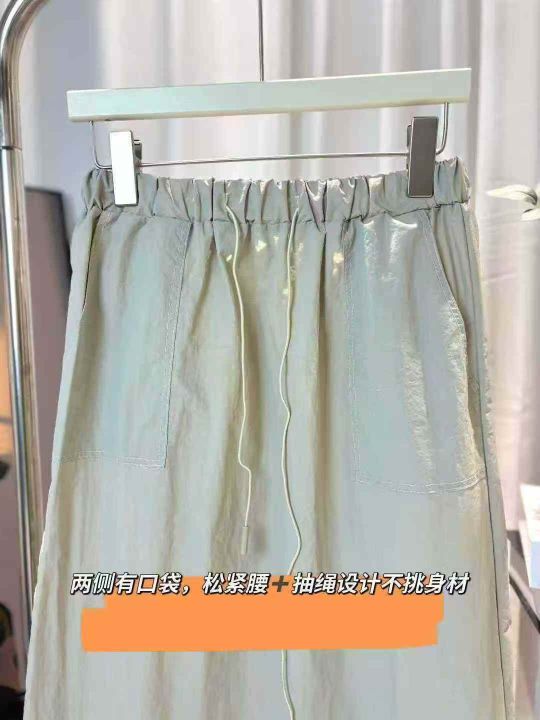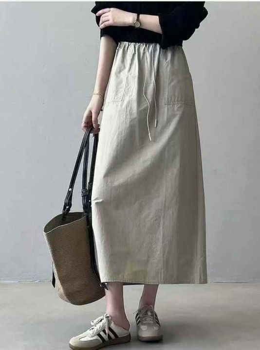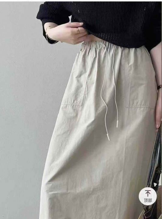 韩系新款复古高腰双口袋工装半身裙绑带松紧宽松A字裙休闲半身裙,高品质尼龙锦纶面料,独立包装