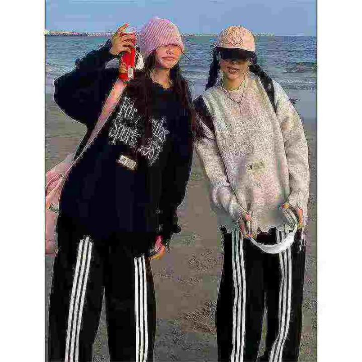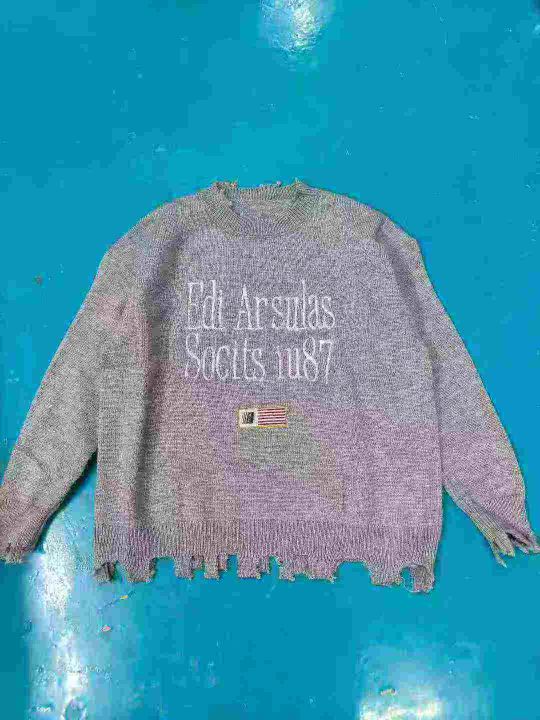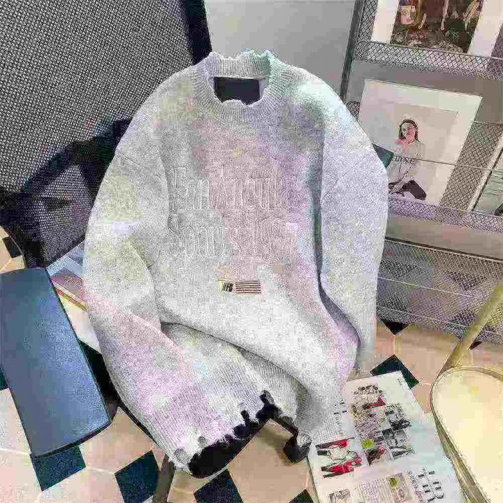207件男女同款美式复古学院风,字母图案提花刺绣毛衣,破洞情侣ins针织衫 ,货品干净独立包装