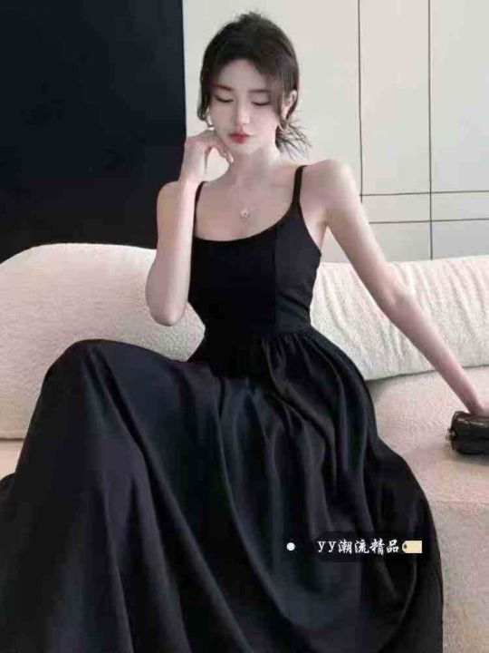 ☕️清冷感显瘦吊带连衣裙女纯欲高腰露背无袖背心长裙子赫本风小黑裙200件...