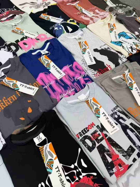 750件左右统一品牌潮牌男女同款高克重短袖,独立包装带吊牌,均码,可以穿170斤以内!300克-350克。图片款图片色!