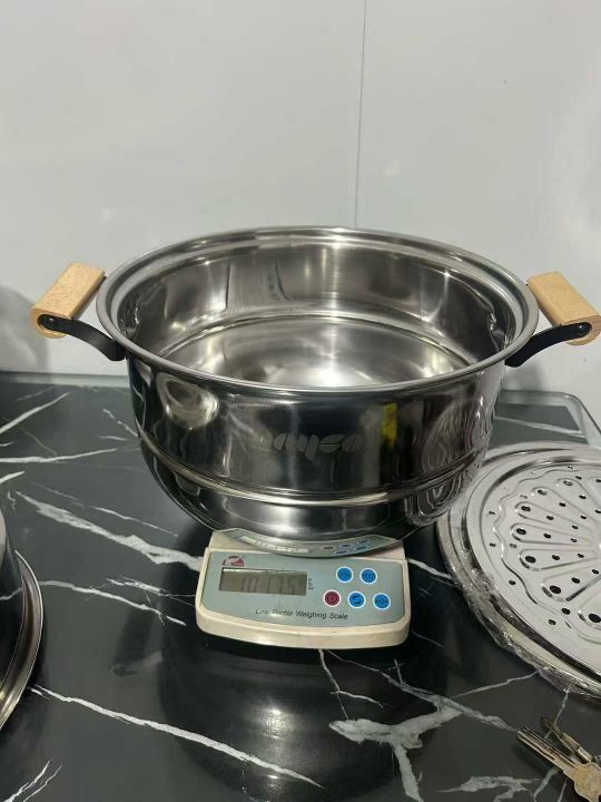 32特厚带磁、精抛光、组合盖木柄双层蒸锅,淘宝盒包装...