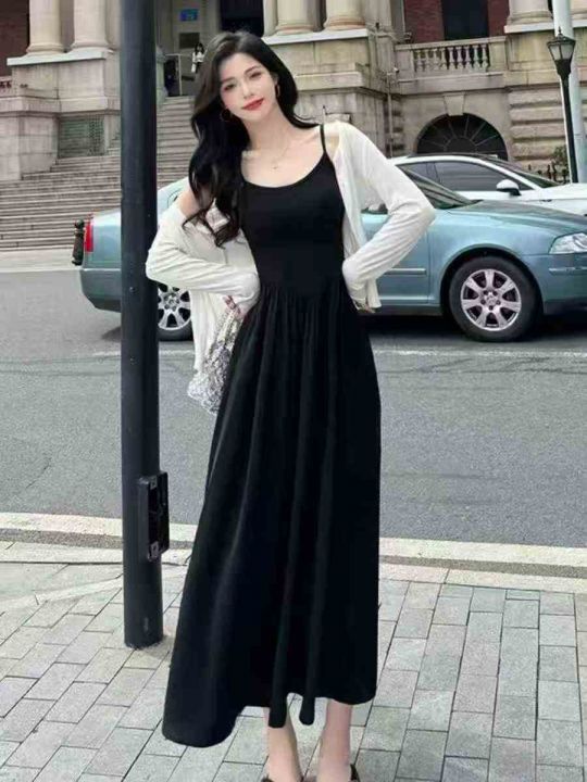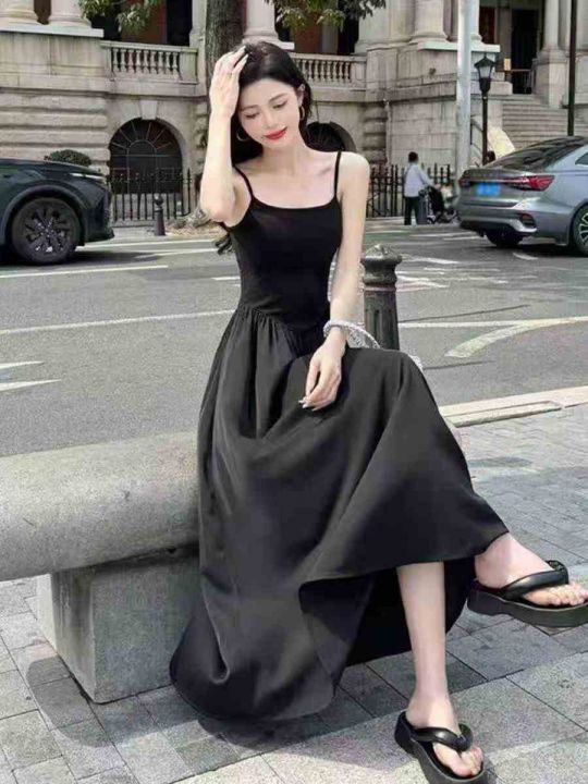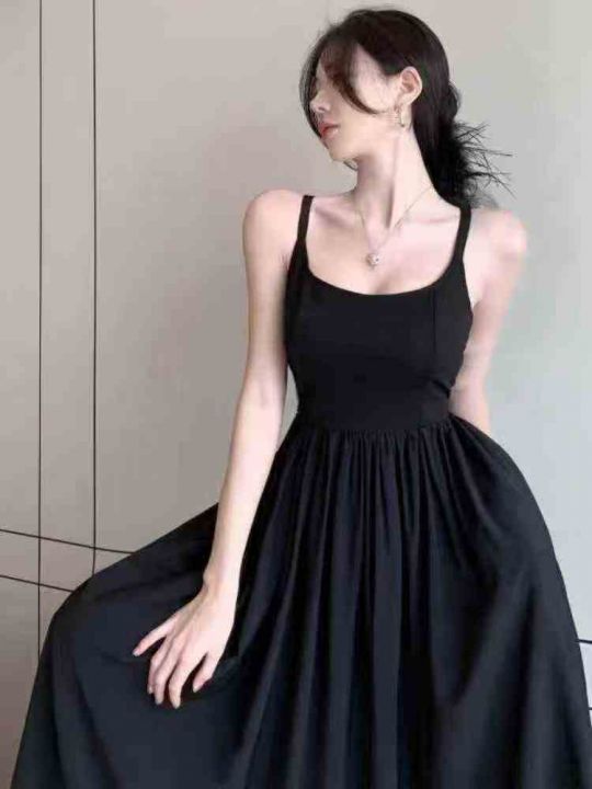 ☕️清冷感显瘦吊带连衣裙女纯欲高腰露背无袖背心长裙子赫本风小黑裙200件全清6.8元,分货7.8元,码数S到XXL,单款黑色高弹力,独立包装[庆祝][庆祝][庆祝]
