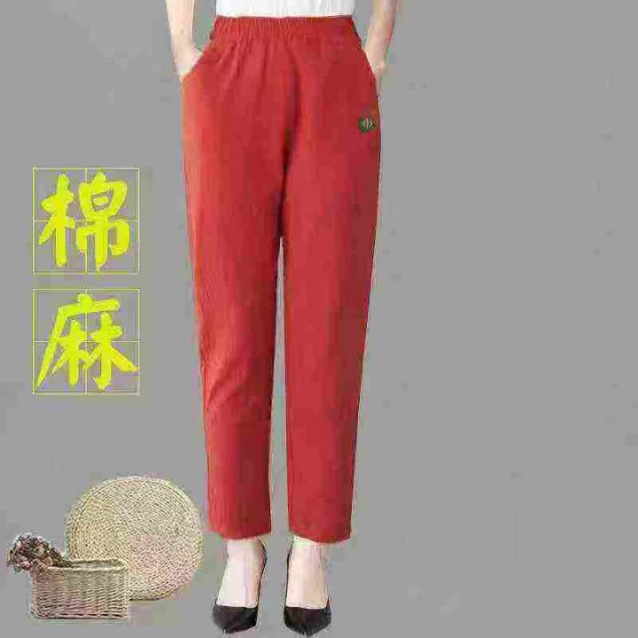 棉麻裤女夏季薄裤子女宽松中年妈妈显瘦女士休闲裤