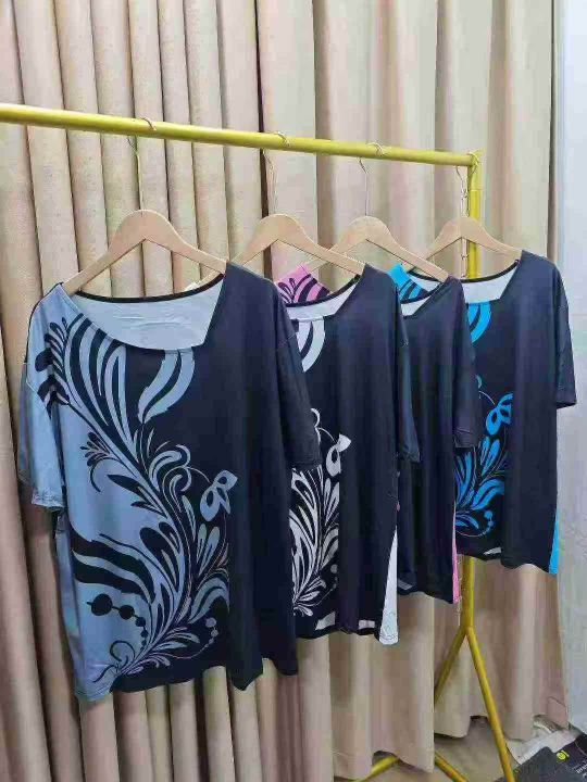Printed Diagonal Neck Women\'s Short Sleeves印花斜领女式短袖