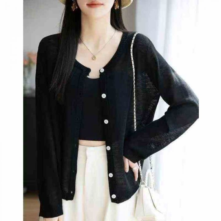 春夏季新款净版简约宽松百搭薄款针织毛衣开衫,独立包...