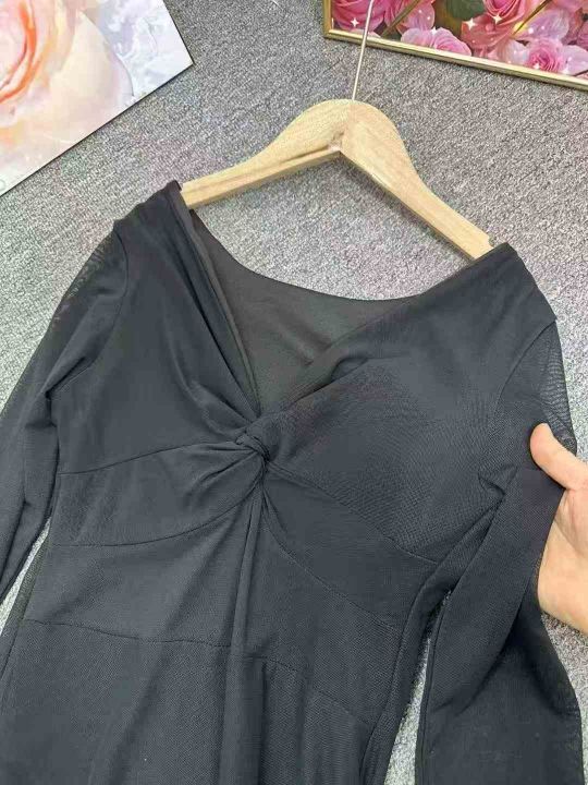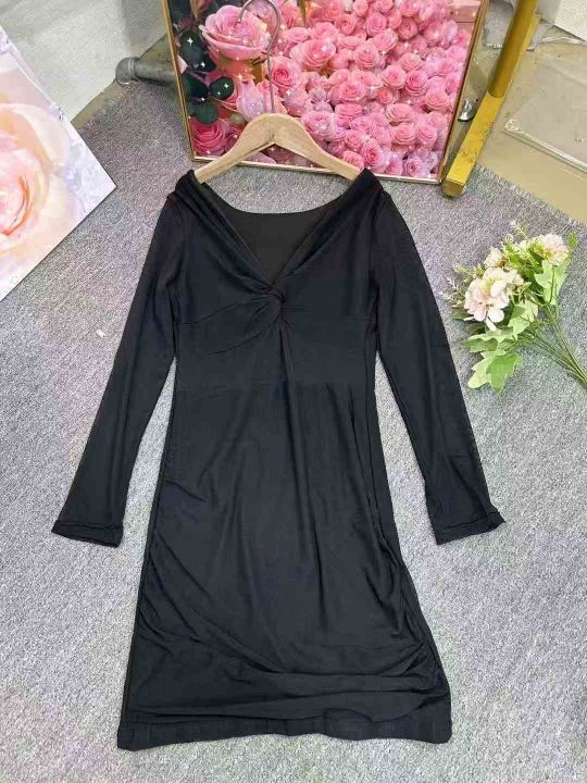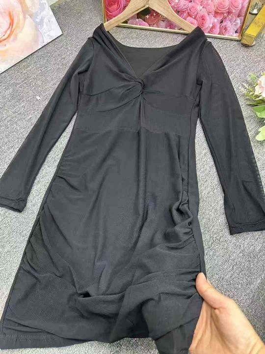 纯欲风性感V领连衣裙女秋冬季甜辣妹设计感内搭网纱修身包臀短裙,单款单色,1到4码,350件左右,4.5清,分货加1