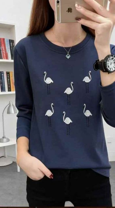 春秋新款韩系大码宽松显瘦纯棉重工刺绣长袖t恤,独立包装,码数L- 3XL码,4...