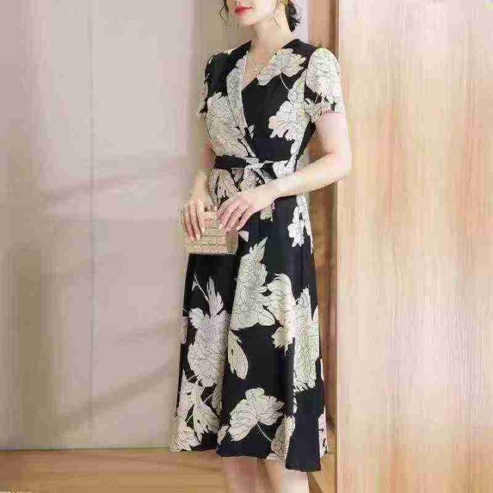 全清7.8元天猫在售款260件左右高品质夏季高端气质V领牡丹百合碎花A字连衣裙...