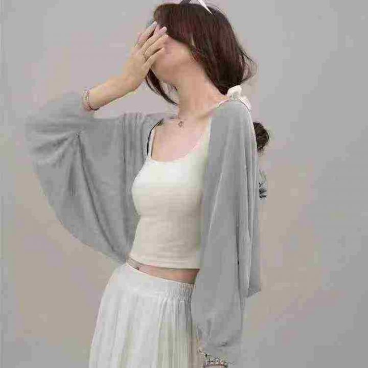 全清5.9新中式系带雪纺防晒衣女夏配裙子外搭小披肩薄纱开衫外套长款,340件...