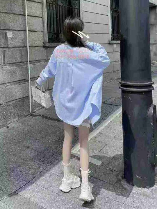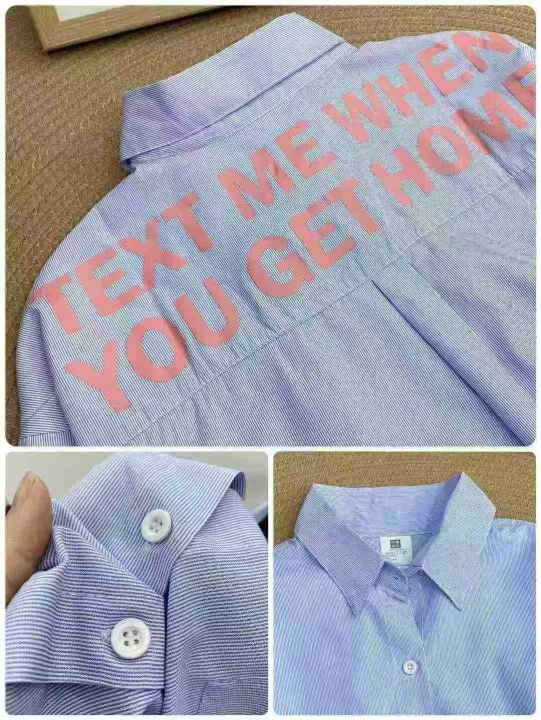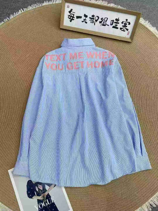韩系条纹设计感衬衫111件9.5,宽松版,背后字母印花,...