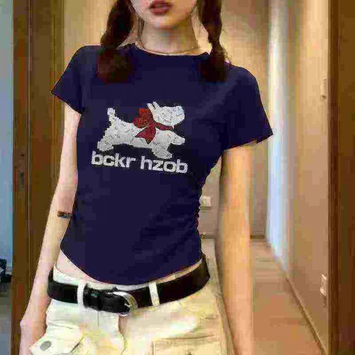 韩系vibe超好看抽褶收腰纯棉短袖T恤女夏季新款时尚百...