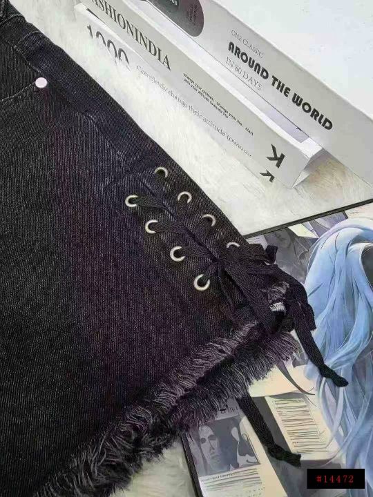 3️⃣美式甜辣风黑色牛仔短裤女夏季设计感毛边绑带a字热裤153条,码数ML,独立包装带吊牌