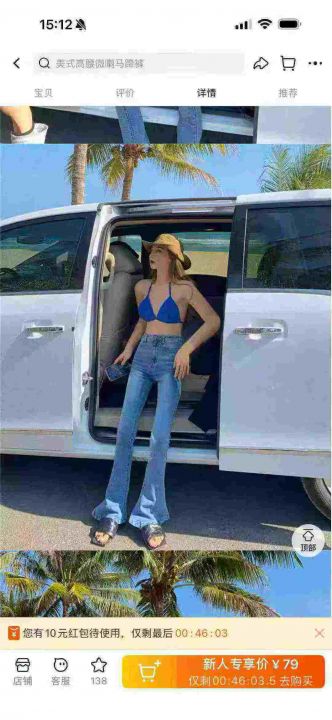 弹力蓝色马蹄女士喇叭显瘦修身拖地牛仔裤,单款单色,数量150,26-32码,福利价13.8秒杀(601·886#)