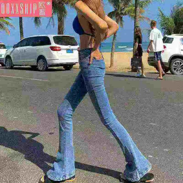 弹力蓝色马蹄女士喇叭显瘦修身拖地牛仔裤,单款单色,...