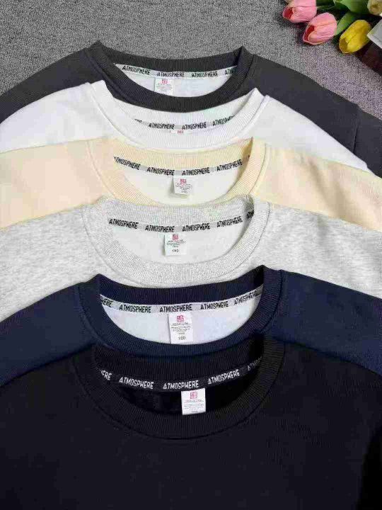 中大童光版纯棉圆领加绒卫衣,内里bb绒,后领包边,5件一捆,6个色,363件,尺码120-170。