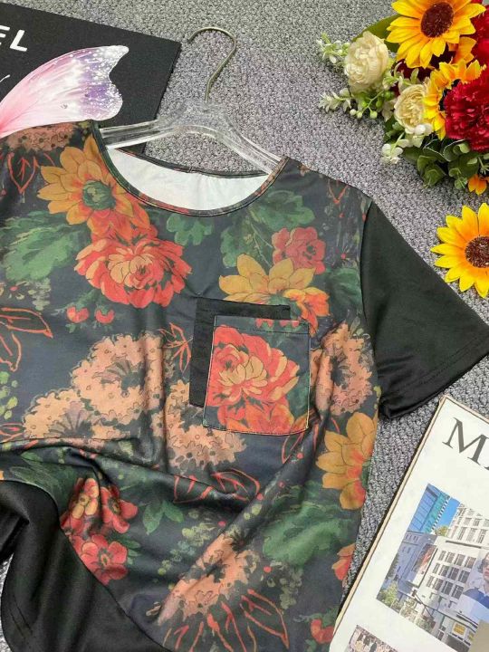 夏季新款宽松国风水墨画洋气百搭轻熟女装T桖,独立包...