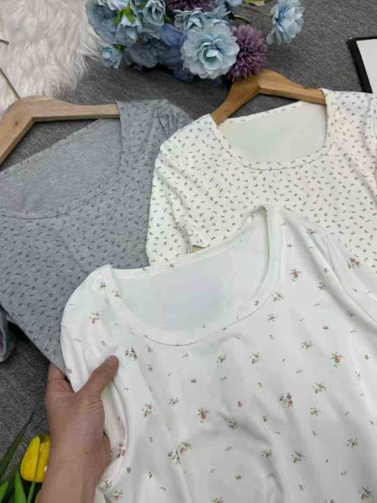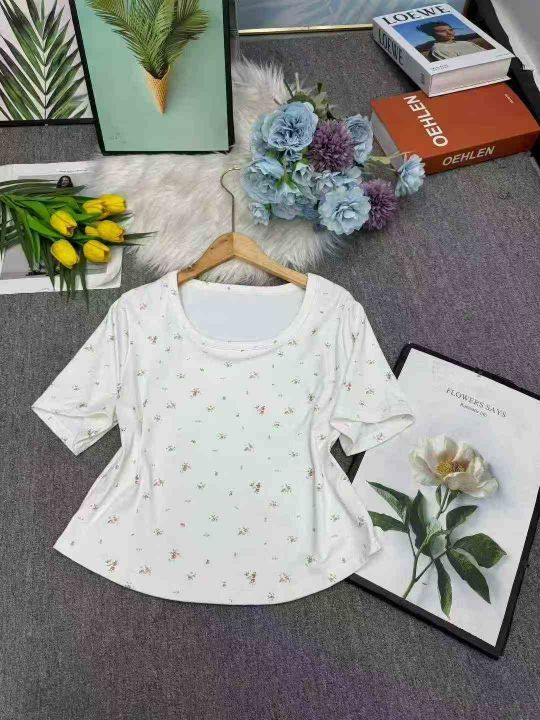 韩系碎花正肩圆领短袖t恤女早春季修身内搭叠温柔风上衣 数量:856件 码数:2/3/5码 大货浅颜色为主,5码多 独立包装 (货号:119#32)