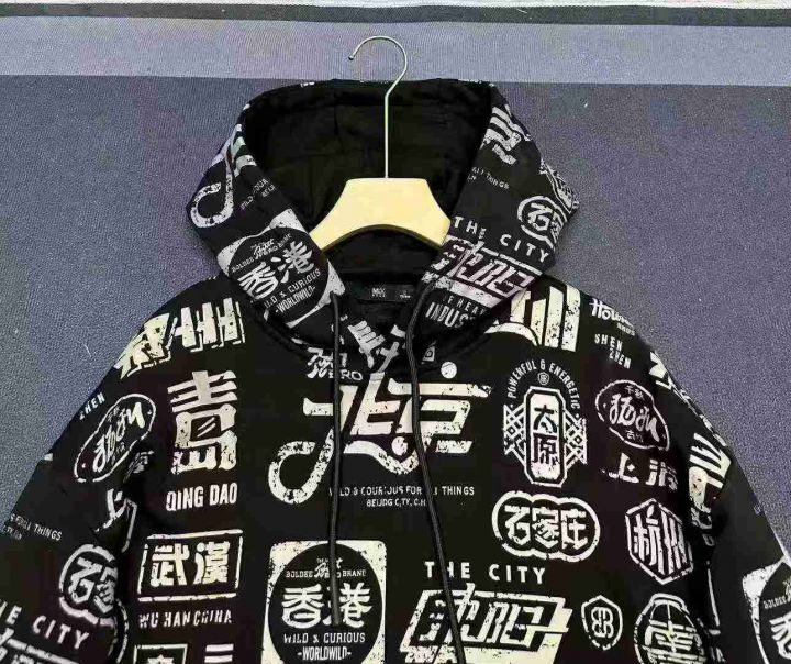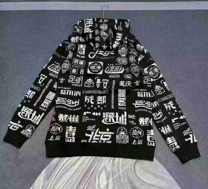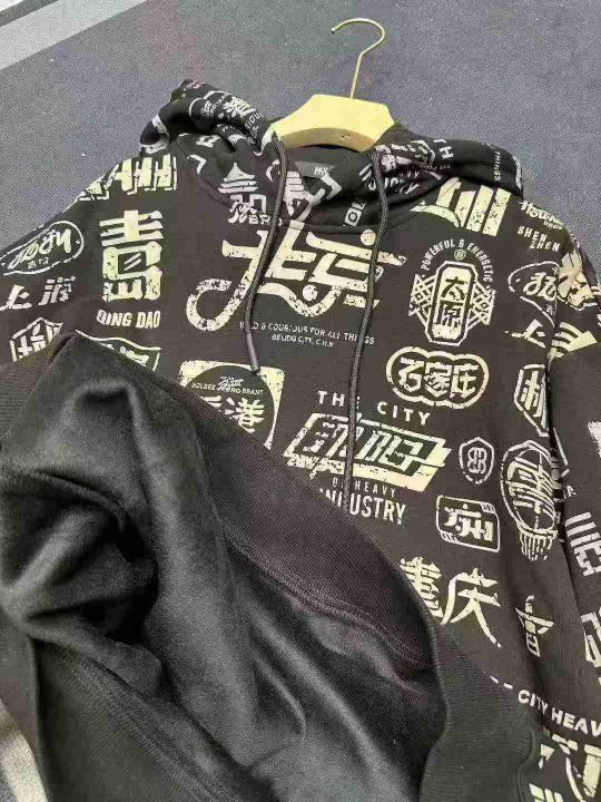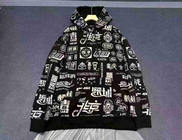 天猫在售款168件左右高品质秋冬款潮流中国风满印休闲大版连帽卫衣,码数M-2XL,内里加超柔BB绒,单款单色,独立包装