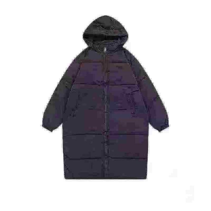冬季女中长款韩版宽松连帽纯色新款情侣过膝加厚休闲面...