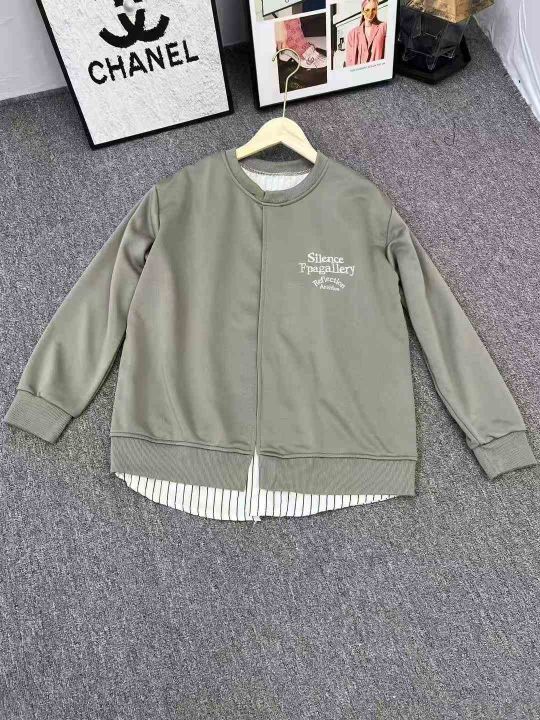 500件左右情侣款假两件套拼接刺绣圆领卫衣,单款单色,码数1-4。
