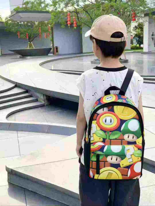 数量5200个左右,蘑菇图案书包为主,双袋双拉链,规格45*32,侧面有多色区分,分货➕1
