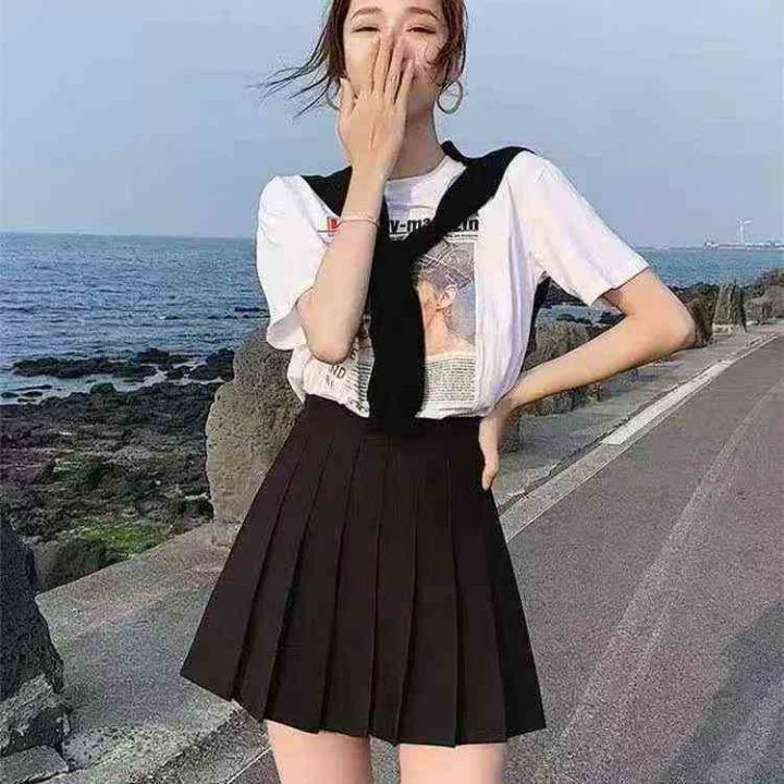 春夏高腰百褶裙短裙女 学院风大码黑色防走光a字超短半...