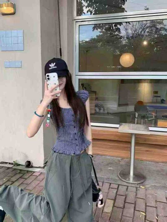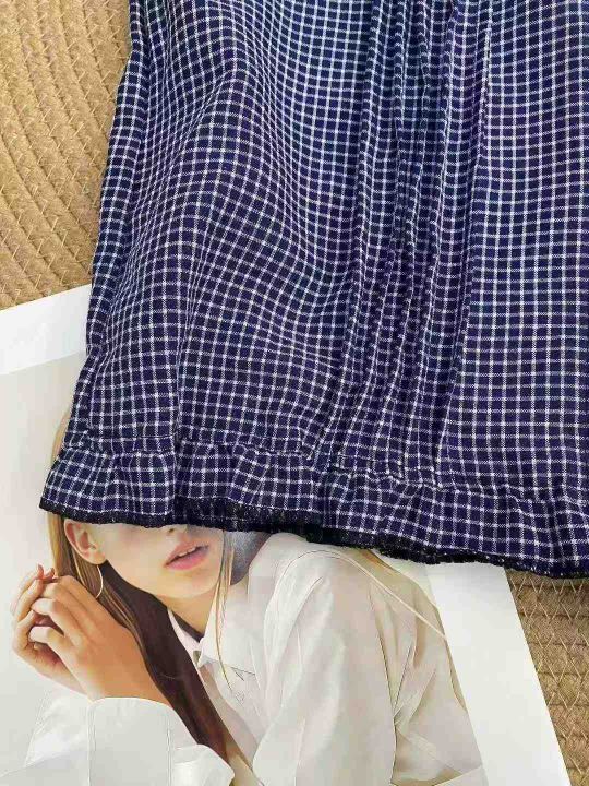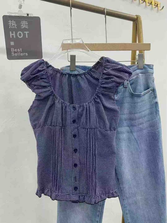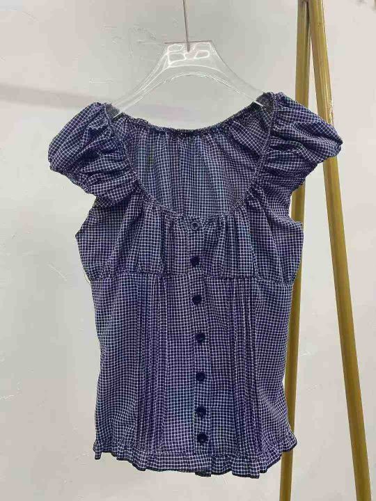 韩系复古格纹短袖衬衫187件7.9褶皱设计,荷叶边,码数...