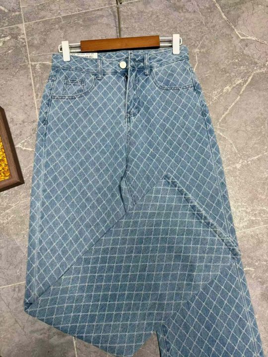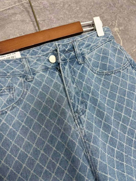 款号782 #设计菱形格提花牛仔面料新款宽松显瘦时尚水...