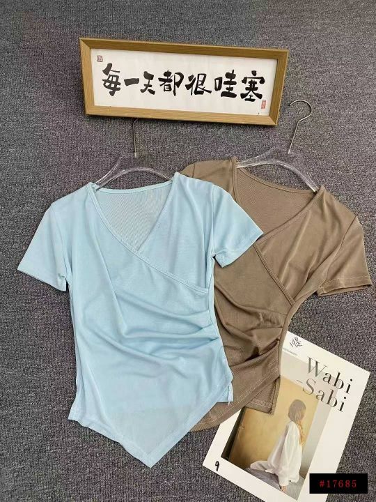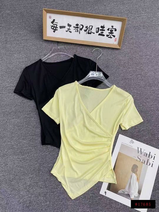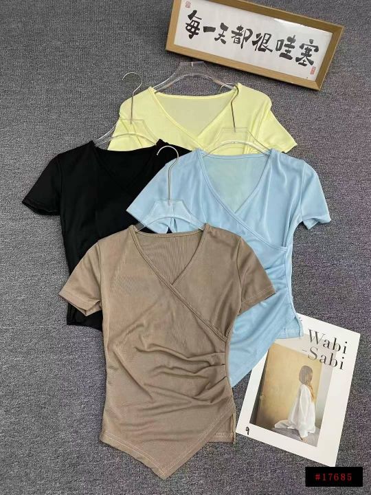不规则冰丝短袖596件5.5面料柔软,高弹力,褶皱收腰,...