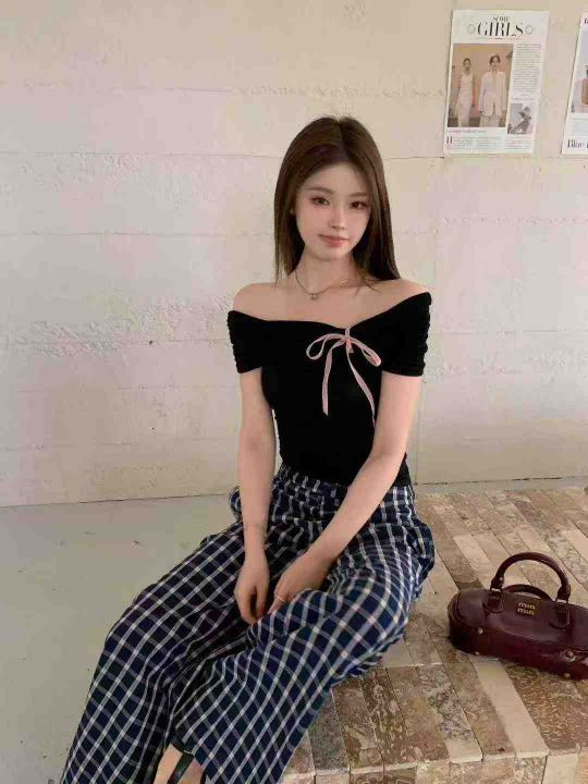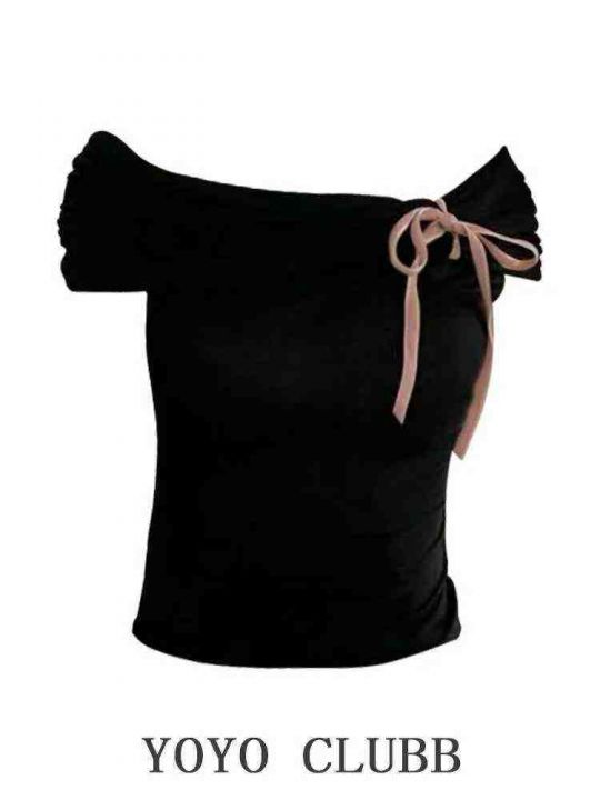 甜欲棉质辣妹一字领上衣599件7.8面料柔软有弹力,绑带...