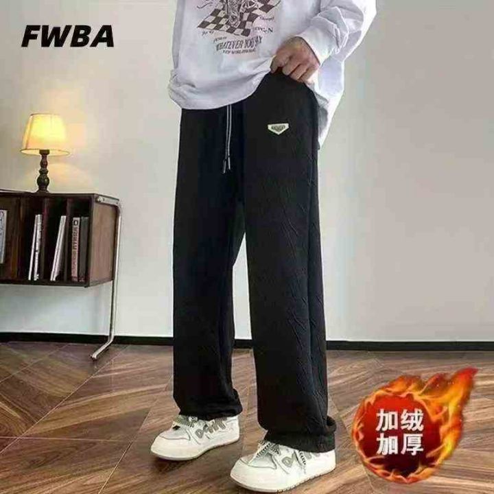 韩版纹理提花休闲裤子冬款加绒高街复古运动裤潮牌百搭宽松直筒休闲长裤,独立包装,货品干净,M-3XL,500件左右,9.8清,分+1