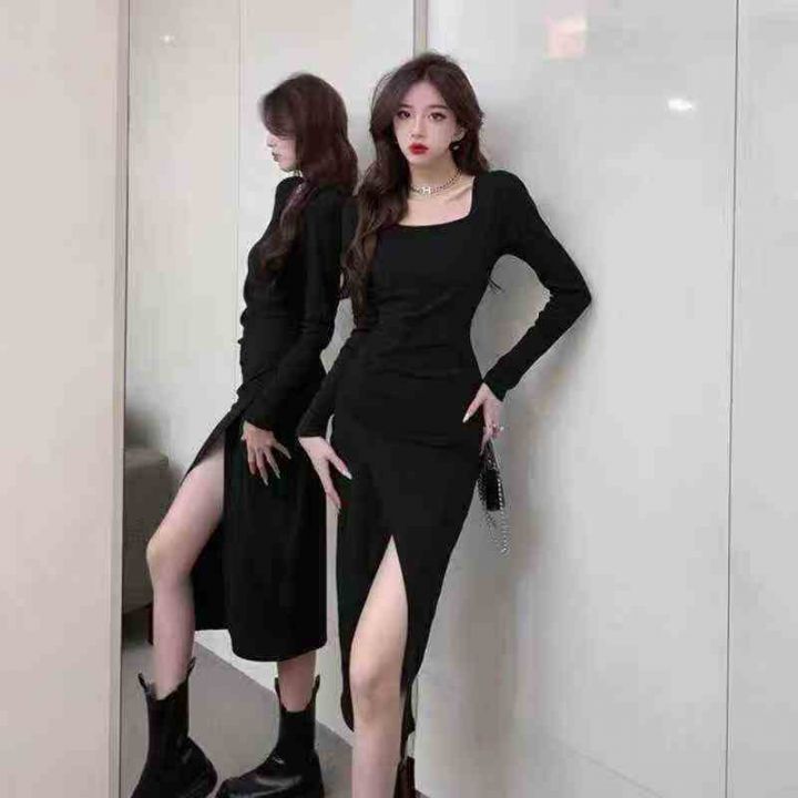 ☕️法式黑色方领开叉长袖连衣裙女秋季新款收腰显瘦长裙赫本风小黑裙200件全清6.8元,分货7.8元。码数S到XXL,高弹力单款黑色[庆祝][庆祝][庆祝]