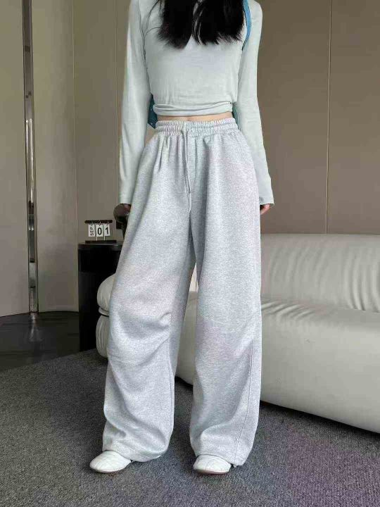 直筒裤子男女款冬季加绒运动裤抽绳裤加厚休闲裤卫裤,黑灰两色