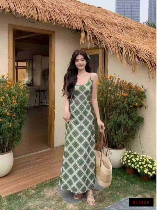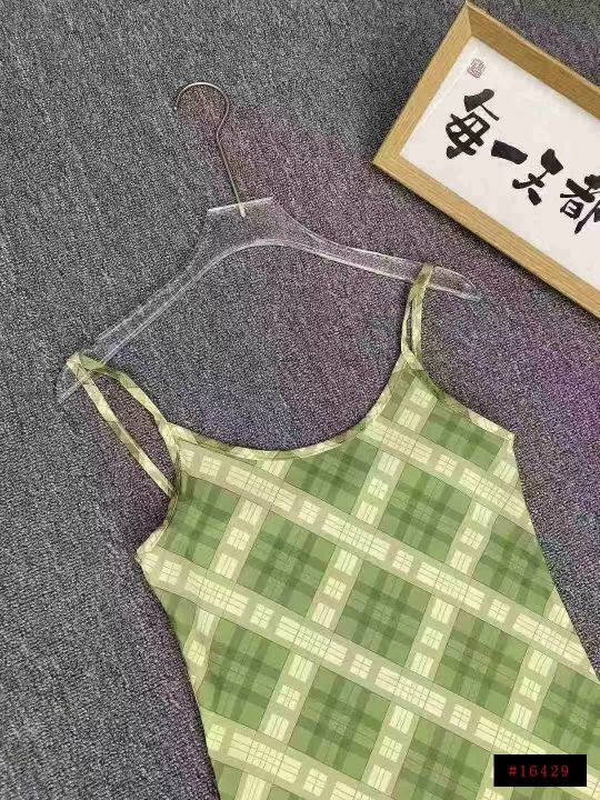 法式复古吊带连衣裙105件8.9,绿色格纹,码数1-4码(S...