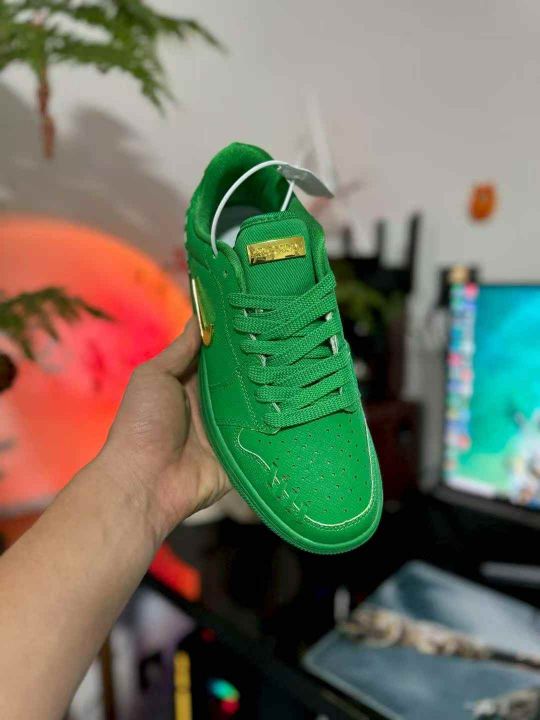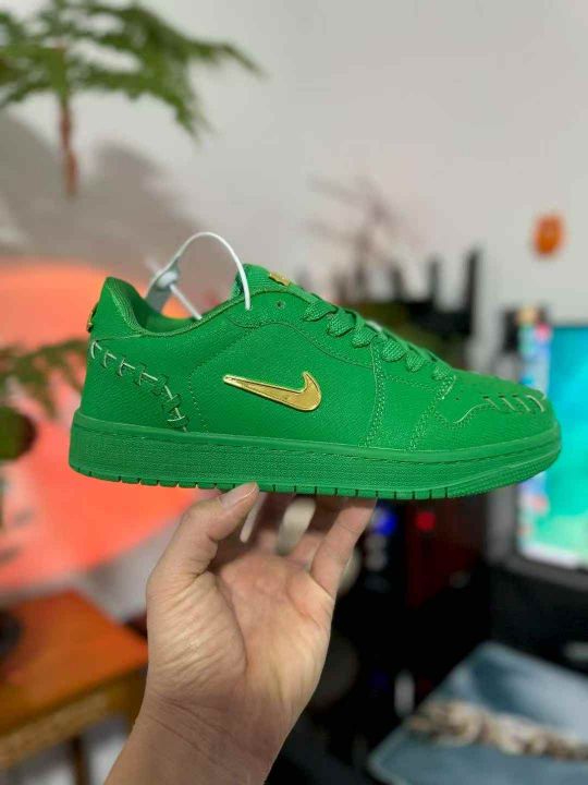 尺码36-40 摩擦吱吱响高版本AJ1 low联名小金钩绿 橡胶...