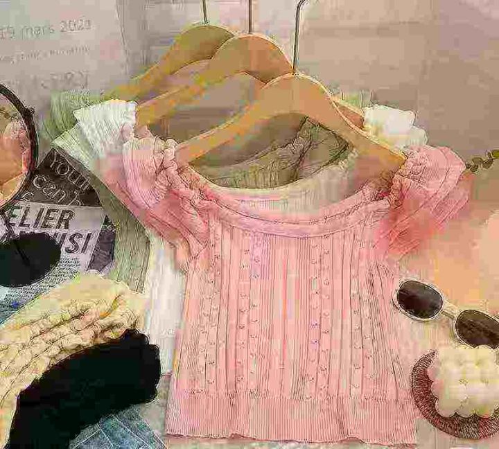 一字领泡泡短袖针织衫法式设计感小众性感短款毛衣露肩上衣,独立包装,均码,1120件,清6.5,分➕1