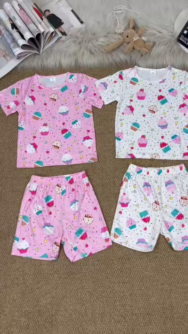 莫代尔棉儿童家居套装短袖,数量212套,单款单粉色,统一面料,尺寸90~120...