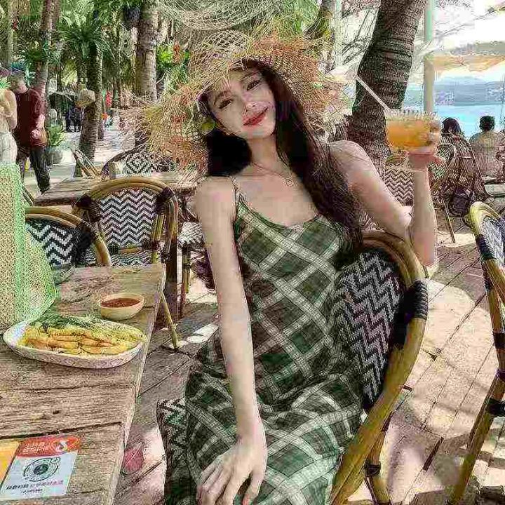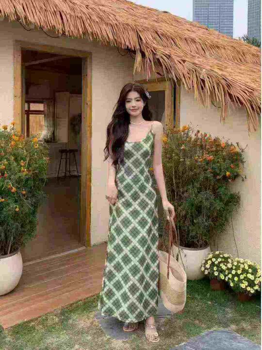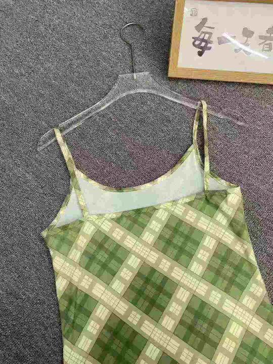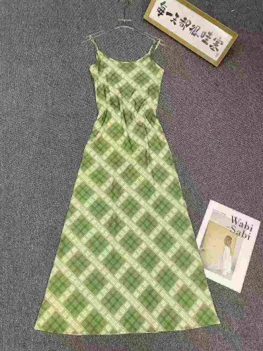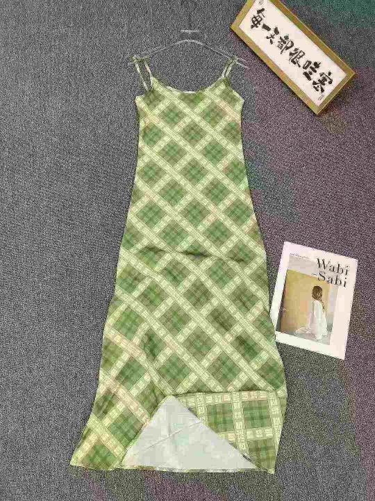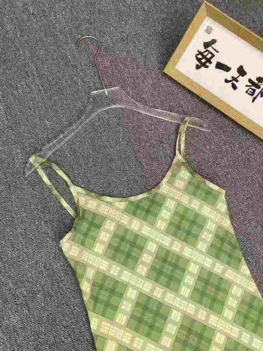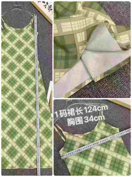 法式复古吊带连衣裙105件8.9,绿色格纹,码数1-4码(S...