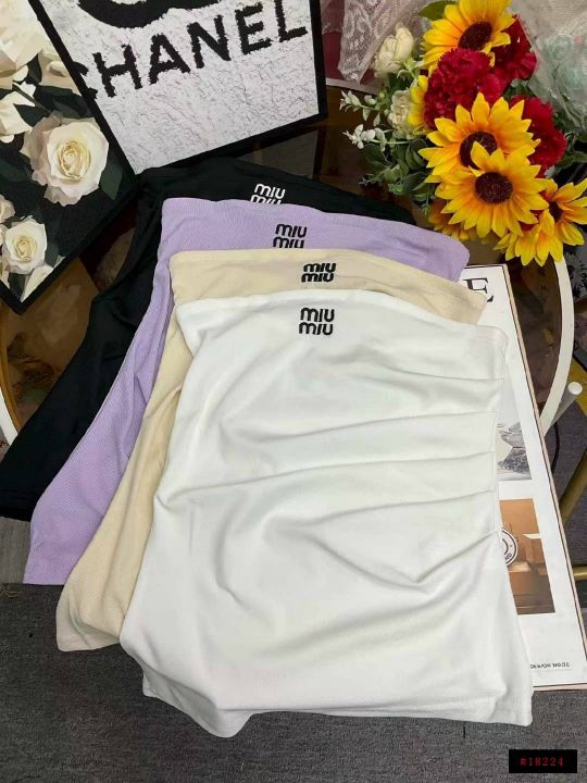 夏季新款性感辣妹纯欲风刺绣小标弹力修身显瘦针织抹胸背心,独立包装,均码...