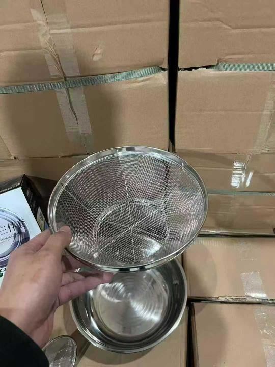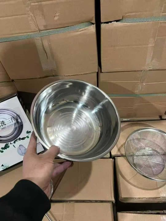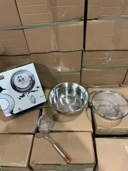 【洗菜洗米】无磁不锈钢沥水三件套家用厨房漏盆洗菜细孔漏水淘米过滤,彩盒原箱原件处理1000套
