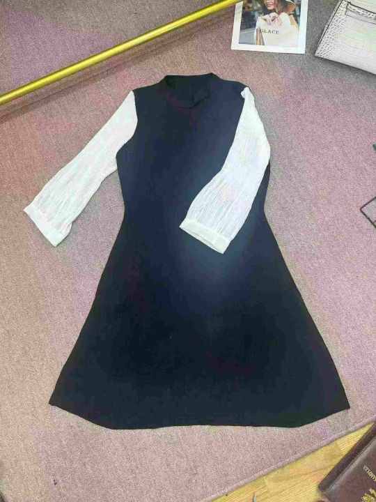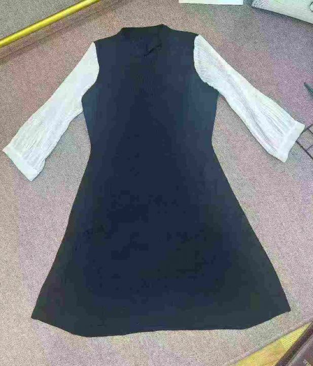 秋装韩版圆领拼接撞色连衣裙简约气质七分袖显瘦针织A字裙,独立包装,均码330件,清11.5,分➕1