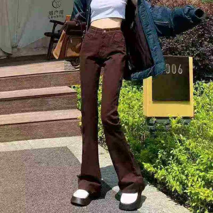 ☕️高弹力棕色微喇叭牛仔裤女秋季新款高腰弹力修身显瘦百搭长裤205条全清1...