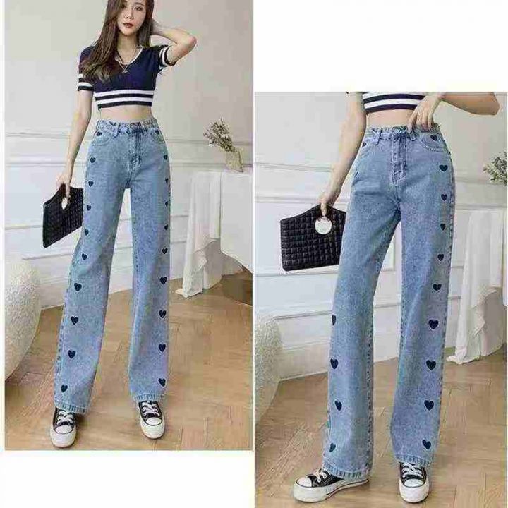 刺绣爱心阔腿裤显瘦高腰宽松牛仔裤,单款单色,数量380条,26-31码,福利价...
