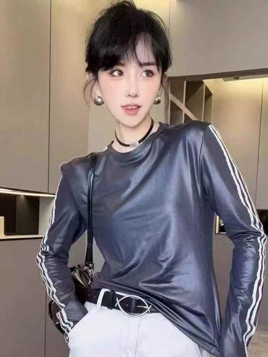 女款亮面圆领拼色长袖T整款4色 1-3码(S-L)460件 清货4.5分货➕1...