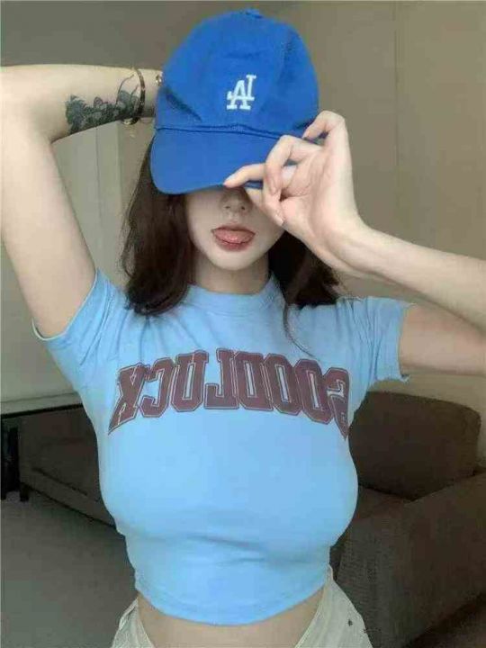 夏季新款辣妹性感纯欲风字母印花针织短袖T,独立包装...