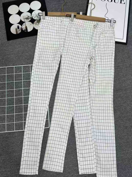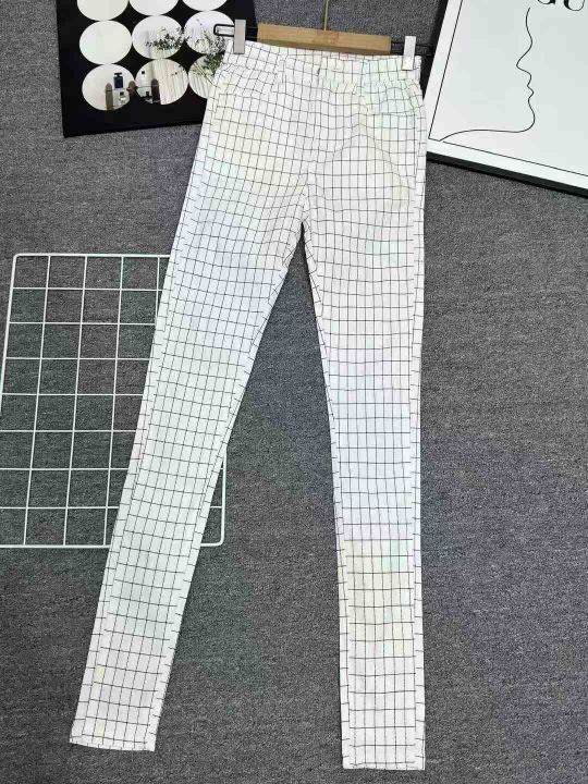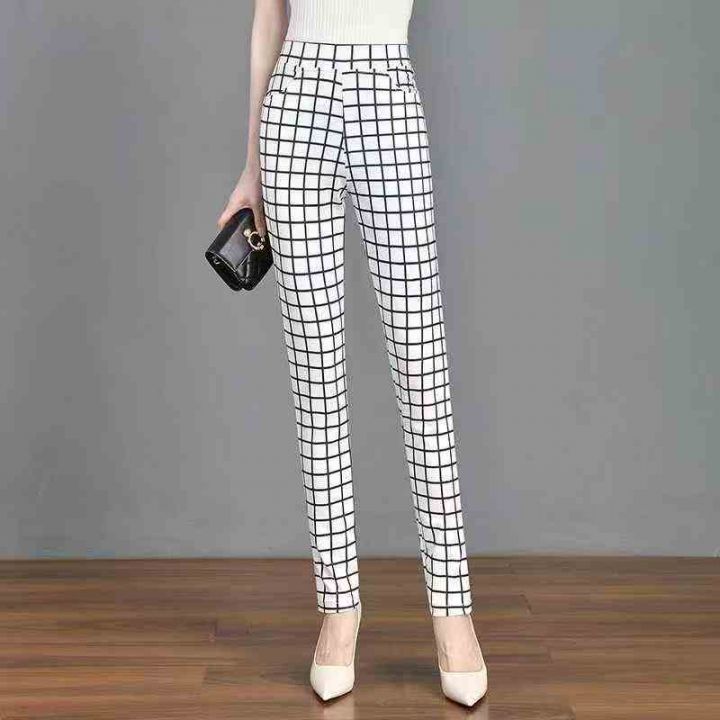 松紧腰黑白格子印花大码2025秋装新款弹力翠花显瘦百搭直筒女长裤,独立包装,高弹力长裤,码数S-XL,数量80左右,全清5.8元